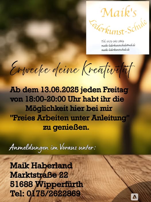 Willkommen an der renommierten „Maik’s Lederkunstschule“, wo Kreativität auf handwerkliche Meisterschaft trifft. Unsere Schule ist eine Oase für Liebhaber der Lederkunst, die ihre Fähigkeiten auf ein neues Niveau bringen möchten. Gegründet mit dem Ziel, die Tradition der Lederhandwerkskunst zu bewahren und gleichzeitig innovative Ansätze zu fördern, bietet „Maik’s Lederkunstschule“ eine einzigartige Lernumgebung für aufstrebende Künstlerinnen und Künstler.