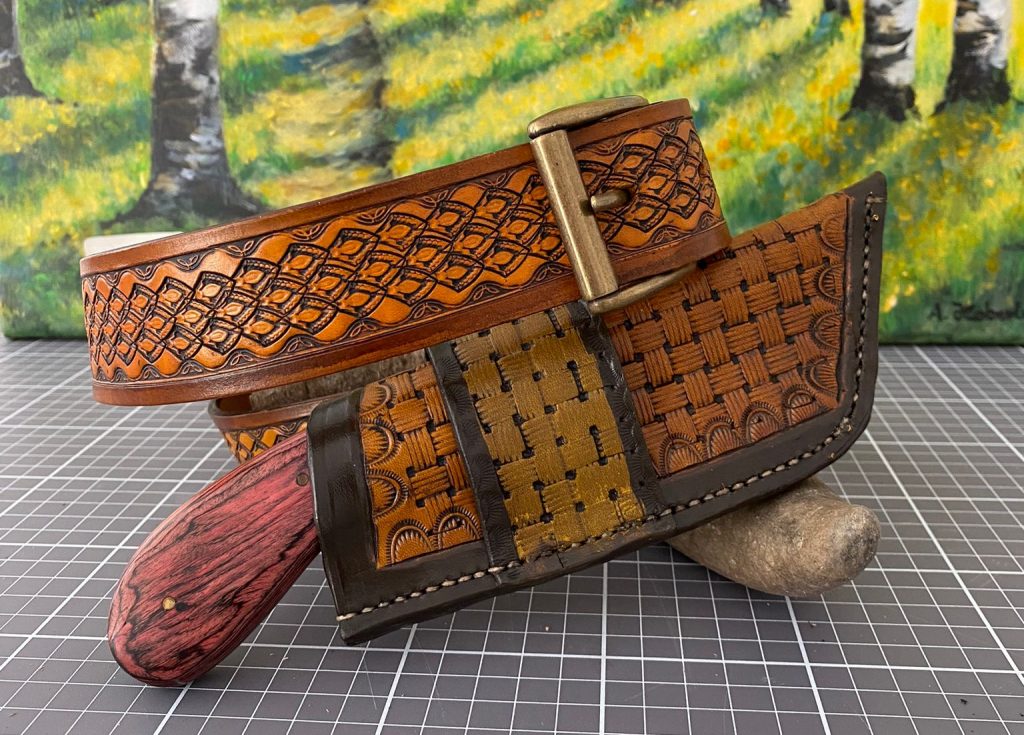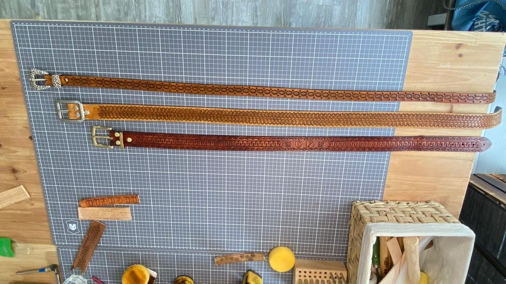 Fertige deinen eigenen Ledergürtel an. Freihand Punzier-Technik. Motiv nach eigen Wunsch. Vorlage auf das Leder übertragen. Swivel-Knife zum einschneiden der Lederoberfläche, Färbe-Prozeduren, Abschlussfinish.