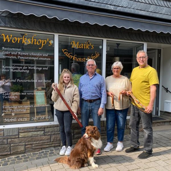 Schwerpunkte des Workshops: Führen des Kurven Messers / Swivel Knife. Handhabung des Punziereisen. Nachbearbeitung des Leders.